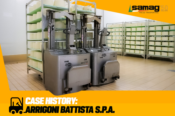 Oggi, nei reparti di stagionatura e salatura del Gorgonzola, sono operativi sei carrelli elevatori ELE Inox Samag, scelti da Arrigoni per la loro robustezza, affidabilità e igienicità, caratteristiche essenziali per la movimentazione delle scalere in un contesto produttivo così delicato.