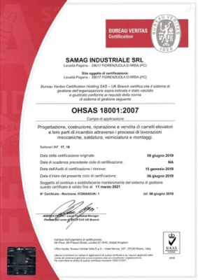 Siamo orgogliosi di informarvi che abbiamo ottenuto la prestigiosa CERTIFICAZIONE OHSAS 18.001 per il Sistema di Gestione della Salute e della Sicurezza sul Lavoro – SGSSL.